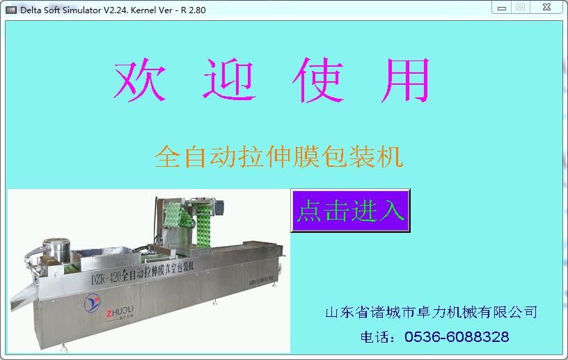 1、給真空包裝機供電以后,稍等片刻人機界面就會顯示“開始畫面”?!伴_始畫面”包含設備名稱、公司信息等,在中間位置出現一個【點擊進入】觸摸鍵。